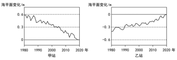 (4)分析甲站區(qū)域與乙站區(qū)域海岸線水平變化的方向和幅度的差異。