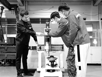 學校立足數控多軸加工設備在生產和實踐教學方面的需求,在全國青年崗位能手魏艷東的帶領下,由機制、數控、電氣、軟件等專業師生組成團隊,自主研制成功小型多軸數控機床。該機床不僅能夠滿足生產實際與實踐教學需求,還能高度再現生產一線中機床檢修、整機聯調和精度檢測等復雜技術場景,帶動開發了機械傳動裝調、主軸裝配調試、機床電氣連接、系統參數設置等多門模塊化課程。學生依托具體工作項目,不僅能夠熟練掌握復雜部件多軸聯動加工工藝設計、計算機輔助設計與制造、機床電氣結構與控制、機床機械結構與裝配、機床故障與診斷等相關理論知識,同時實現了機械設計、機械裝調、數控編程、機床操作等崗位核心技能的融會貫通,分析復雜技術問題和制定優化方案的能力均得到大幅度提升。