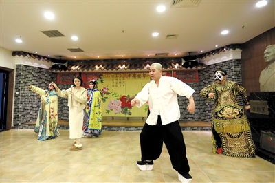 11月14日,沈陽京劇院的老師們指導幾位留學生學習京劇《霸王別姬》。