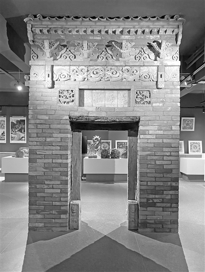 興工,大事也。如何復建,建在何處?這又是一個慎重的問題。在經過反復論證之后,最終決定將這座珍貴的建筑在基地的中國傳統瓦作博物館內復建。2022年9月,博物館基本建設完成,門樓正式開始復建。為不影響正常的教學秩序,利用疫情相對平穩之際,學校在國慶假期從山西請來了具有豐富古建筑修復經驗的董養明擔任技術指導,并由基地師生與山西、陜西地區的瓦作老匠師一起合作進行復建。在這座古建筑的保護復建過程里,參與其中的師生不僅直接體悟到古代文人士大夫的設計意匠,而且現場開展了一堂生動的歷史文化遺產保護和古建筑技藝實踐課。復建后的明代門樓在博物館展廳內古樸盎然,蔚然生輝。