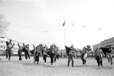 近日,安徽省界首市青少年校外活動中心組織教師來到靳寨中心學校,開展航模制作與放飛大賽。活動中,學生們在教師的帶領下動手制作航模,并在操場上放飛。趙亮 攝