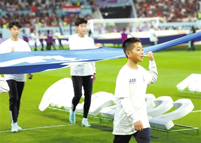 來自中國貴州省黔東南苗族侗族自治州丹寨縣的12歲苗族少年金粲璨怎么也不會想到,在12月17日、18日的卡塔爾世界杯季軍和冠軍爭奪戰中,他能以護旗手的身份登上兩場球賽的綠茵場。作為丹寨縣城關第一小學的六年級學生,這是他第一次走出黔東南州、走出中國、走向世界。