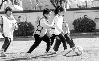 圖為浙江省湖州市德清縣乾元鎮第二幼兒園的孩子們正在踢足球。近年來,該園充分發揮足球優勢資源,通過聘請專業足球教練,教授幼兒足球知識和技藝,讓孩子們享受足球運動帶來的快樂。王樹成 攝