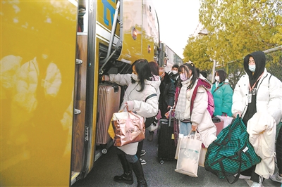 12月20日,浙江省湖州市長興職教中心和長興技師學院180余名“定向就業云貴班”的學生坐上包車大巴,踏上返鄉旅程。“云貴班”學生主要來自貴州織金和云南昭通,長興縣距離兩地均有2000多公里,預計行程近40小時。長興縣交投汽運公司專門安排4輛大型客車,采取點對點、一站式運輸方式,最大限度避免了學生在站外聚集,降低疫情通過交通渠道輸入風險,保證學生平安回家。譚云俸 攝