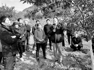轉折發生在2016年。一場五十年不遇的極端低溫天氣,氣溫降到了零下12攝氏度,果樹受到不同程度的凍害。當時坐果較早、個體較大的枇杷幼果全部受凍,但由于其生長特性,短時間內受凍幼果不會表現出癥狀。為了防止群眾的“經驗主義”——疏果操作中疏除未受凍的個體小的幼果而保留已經受凍但未顯現癥狀的大果,魯周民在大年初八就趕到村里,向村干部和組長說明情況,并要求必須馬上通知到每一個枇杷種植戶,停止疏果操作管理。聽完魯周民的指導,村民們半信半疑地停止了疏果操作。而當天氣回暖,受凍大果紛紛掉落時,村民們徹底信服了魯周民。當年枇杷收入近100萬元,沒有出現嚴重的經濟損失。從此,果樹種植戶們年年盼著魯教授到自家果園示范果樹種植管護技術。
