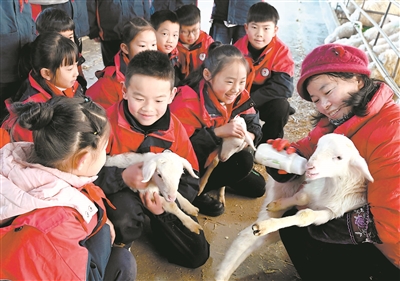 1月29日,浙江省武義縣三角店小學星火中隊的小朋友利用寒假在履坦鎮后桑園村一家養羊場當起“小羊倌”,既體驗了勞動又學習了知識。張建成 攝