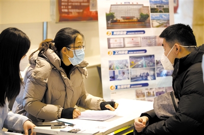 2月7日,在哈爾濱市人力資源和社會保障局招聘服務大廳,2023年高校畢業生新春系列招聘會首場招聘舉行。本場招聘會有70家企業參與,可解決近2000名高校畢業生就業。據悉,該系列招聘會在二月份計劃舉辦4場。招聘形式包括現場招聘、網絡招聘、直播帶崗等。新華社記者 張濤 攝