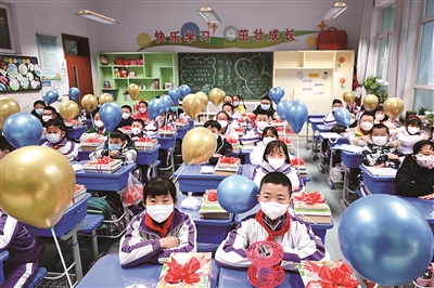 新學期第一周是關鍵的“調適期”。“我們提出開學第一周不講新課,重在實現線上線下‘無縫銜接’。”北京第二實驗小學校長蘆詠莉說,學校設計了一系列特色“開學第一課”、主題班會等,幫助學生適應校園生活。同時,各科教師會帶領學生對上學期居家學習階段的學業進行查缺補漏,確保夯實基礎。