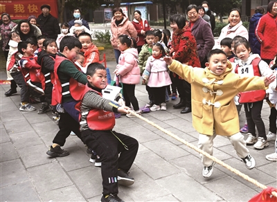 近日,在四川省內江市東興區西林街道金牛社區,孩子們正在參加由社區組織的拔河比賽。近年來,內江市有序整合場地資源,統籌功能設施,打造“甜城寶貝屋”,通過組織開展趣味運動、體驗傳統文化等多種公益服務,有效緩解了群眾周末孩子托管難題。