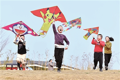 2月26日,小朋友在湖北省宜昌市秭歸縣茅坪鎮望江公園放風箏。春光明媚,人們踏青出游,放飛風箏,樂享春日美好時光。