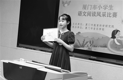 “我最喜歡《三國演義》,先看兒童版,再看原著,里面能看到英雄的豪情,還能看到英雄的勇敢,更有智慧。”來自廈門市思明區群惠小學的四年級學生張駿懿向評委介紹了自己的書單,并講述其中《三國演義》的主要內容以及閱讀的感受。這是廈門市小學生語文閱讀風采比賽決賽的場景。