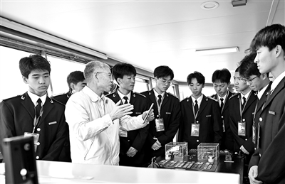 廈門(mén)海洋職業(yè)技術(shù)學(xué)院學(xué)生在“向陽(yáng)紅03”號(hào)科考船上,聽(tīng)船上工作人員講解設(shè)備性能與用途。近日,廈門(mén)海洋職業(yè)技術(shù)學(xué)院與自然資源部第三海洋研究所舉行簽約儀式,共建實(shí)習(xí)實(shí)訓(xùn)基地。