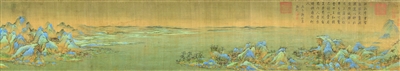 真正將青綠山水推向頂峰的是北宋王希孟的《千里江山圖》。王希孟作為宮廷畫家,在創(chuàng)作這幅傳世名作時(shí)才二十多歲,創(chuàng)作了這幅名作之后,他的去向也成為千古之謎。這幅畫以概括的手法、精細(xì)的筆觸、絢麗的色彩,描繪了當(dāng)時(shí)的美麗山河。畫作分為五段,每段以水面、游船、沙渚、橋梁相銜接。這幅畫如同講故事一般,將山水之韻娓娓道來(lái)。整體看,畫作表現(xiàn)了千里江山壯闊的氣勢(shì),既有連綿起伏的山脈,又有水天一色的浩渺江河。畫中的水村夜市、亭臺(tái)樓閣、長(zhǎng)橋磨坊、捕魚駛船等,刻畫細(xì)致,可謂一點(diǎn)一畫,均無(wú)敗筆,山村人物,細(xì)若小點(diǎn),無(wú)不精心。