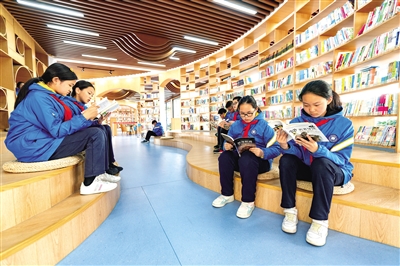 “學校和課堂是學生閱讀的主陣地?!痹谡憬〗逃龔d黨委書記、廳長毛宏芳看來,學校在建好圖書館的同時,還要充分利用校園空間營造書香氛圍,把學校建成學生喜愛的“閱讀場”。