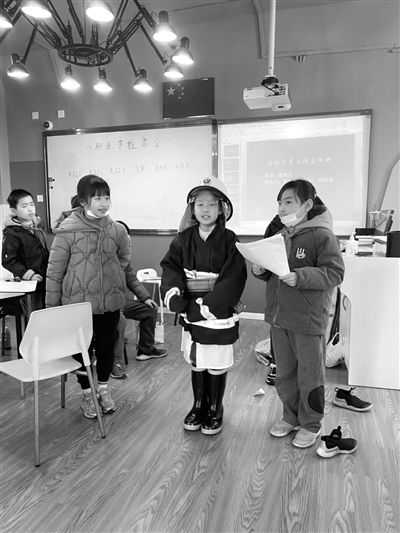 這一天,采用兩名教師包班制。由這兩名教師協(xié)同工作,統(tǒng)攬這一天班級中所有的教學任務(wù),教師跨學科教學。在這樣的包班制下,教師進行跨學科教學,將不同學科知識進行連接與整合,將分散的課程知識按主題進行邏輯結(jié)構(gòu)化,并與兒童的經(jīng)驗與生活進行聯(lián)系,將主題作為學生進行探索學習的主要線索。