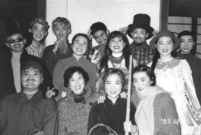 1995年,課本劇《華老栓茶館》演員合影。受訪者供圖