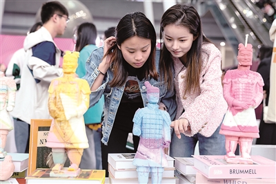 5月18日,觀眾在博覽會上參觀手造作品。當日,山東工藝美術學院2023年設計藝術博覽會在濟南舜耕國際會展中心開展。本屆博覽會以“設計·生活”為主題,集中展示學校1800多名本科畢業生作品,突出大學生創意,搭建就業橋梁,促進優秀畢業生與職業崗位的互動雙選。