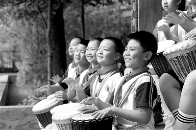 近日,黑龍江省齊齊哈爾市龍沙小學(xué)學(xué)生正在課后服務(wù)時間打非洲鼓唱童謠。立足開展好課后服務(wù),龍沙小學(xué)發(fā)揮學(xué)校教育主陣地作用,促進(jìn)學(xué)生全面發(fā)展。常文華 攝