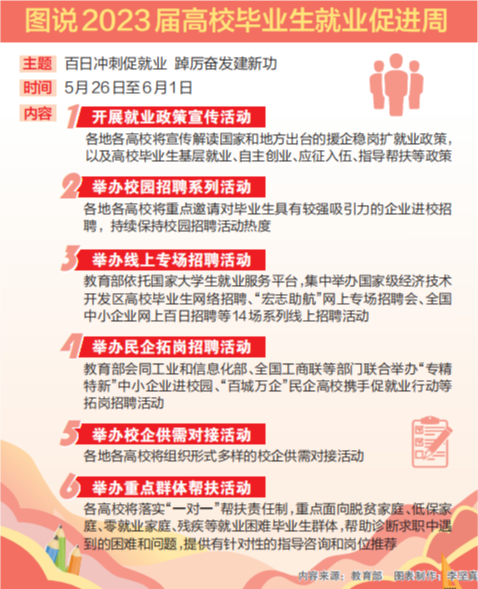 就業促進周系列活動拉開了教育部5月—8月“百日沖刺”行動的大幕。教育系統將持續開展拓崗位、促對接、強指導、暖幫扶等系列活動,努力幫助更多畢業生落實就業去向。