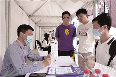 在招聘會現場,“就業服務加油站”的數位就業輔導教師正在幫助學生修改簡歷,并就面試技巧、職業生涯規劃等問題答疑解惑。北京科技大學教師仲天琳說:“規劃這件事越早開始越好。從上學的第一天開始,就要對自己的職業發展方向有一個初步的設想。”