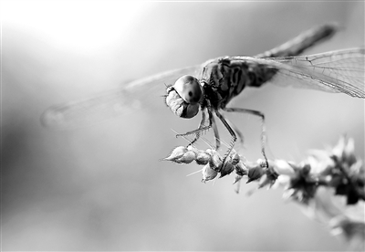 我為那只蝴蝶在草叢中蹲了很長時間,可它不緊不慢,翩翩而飛,和我若即若離,我不敢站起來,那樣蝴蝶會離我遠去。意外的收獲是來了一只蜻蜓,就落在我眼前的草穗上。它雖有復眼,但肯定沒發現我。它落下,休息,好閑適啊。我能看到它歪著腦袋研究腳下的草穗,面帶微笑,它還用前面那條,左腿,或者叫左手,輕輕撫過草芒。