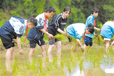 近日,貴州省黔西市協和鎮石人小學師生體驗插秧。近年來,黔西市關工委緊扣“鄉村振興”主題,鼓勵轄區內各中小學、幼兒園開展形式多樣的“田野課堂”教學實踐活動。周訓超 攝