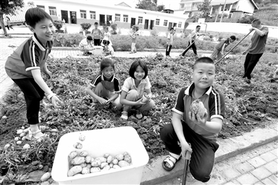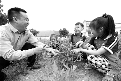 近日,湖北省十堰市竹山縣麻家渡鎮營盤河小學學生扛著鋤頭,拿著筐子,在老師的指導下,學習采摘辣椒、鮮桃等,忙得熱火朝天。營盤河小學一至三年級學生共37人、教師6名,是一所農村小規模學校。2021年10月,該校在校園閑置區域開墾出10多塊開展勞動教育的試驗田,建成占地1500平方米的“幸福農場”。