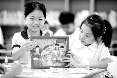 近日,在浙江省湖州市長(zhǎng)興縣夾浦鎮(zhèn)社工站,孩子們?cè)谘b裱自己制作的亞運(yùn)主題紐扣畫(huà)。暑期,當(dāng)?shù)亻_(kāi)展愛(ài)心公益托班,當(dāng)?shù)卮髮W(xué)生志愿者為轄區(qū)內(nèi)雙職工子女、新居民子女進(jìn)行為期一個(gè)月的日??醋o(hù),并開(kāi)設(shè)公益課堂、非遺體驗(yàn)、勞動(dòng)實(shí)踐、紅色研學(xué)等豐富多彩的活動(dòng),讓孩子們度過(guò)安全、快樂(lè)、有意義的暑假。