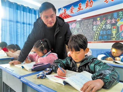 上課時,孫志成是要求嚴(yán)格的教師;一下課,孩子們就把他圍起來玩鬧嬉戲。在幼兒園經(jīng)常不說話的小翔,上了一年級后變了:性格開朗了,不再逃避和陌生人接觸,期末還考了全班第一。變化的背后,是孫志成的努力:見小翔不愿上講臺答題,就抱上去鼓勵“錯了不要緊”;見他不做課間操,就找個學(xué)生專門給教……
