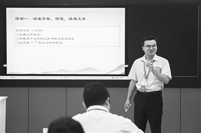 日前,全國中小學(xué)青年教師教學(xué)競賽決賽在浙江嘉興開賽,圖為中學(xué)語文組一名教師在進(jìn)行教學(xué)展示。 本次競賽以“上好一門課”為理念,共設(shè)小學(xué)組、中學(xué)語文組、中學(xué)數(shù)學(xué)組、中學(xué)英語組、中學(xué)思想政治組五個組別,來自全國各地的150余名選手進(jìn)入了決賽。