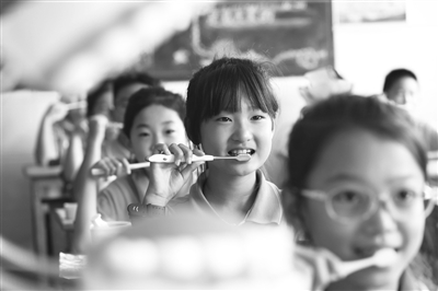 9月20日是全國愛牙日。河北唐山多地學校開展教育宣傳活動,講解護牙知識,倡導孩子們養成愛牙護牙的好習慣。圖為豐潤區王官營小學學生學習正確的刷牙方法。