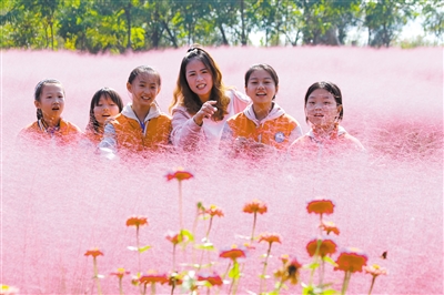 近日,山東省高密市王吳小學師生在粉黛亂子草花田里游玩。該校利用農村學校資源優勢,組織開展生態研學活動,讓孩子們充分感受大自然的魅力。