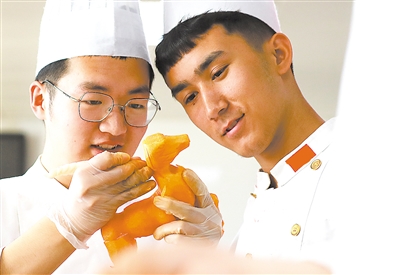 經(jīng)過近兩個(gè)月的學(xué)習(xí)培訓(xùn),獲得烹飪中級(jí)工證書的和碩班學(xué)生艾合麥提江十分高興。“這里的學(xué)習(xí)生活很充實(shí)也很愉快。學(xué)校還專門組織我們游覽了偉大祖國(guó)的首都北京,并且在天安門前合了影。如果有可能的話,我想在北京開一間維吾爾族特色餐館,讓全國(guó)各族人民都能品嘗到新疆的美食。”他說。