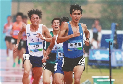 11月9日,第一屆學青會(校園組)田徑大學男子乙組5000米比賽在南寧進行。今年全國室內(nèi)田徑錦標賽男子3000米冠軍、上海隊的謝冬生以14分04秒60的成績奪冠,并刷新個人最佳成績。圖為謝冬生在比賽中。本報記者 張學軍 攝