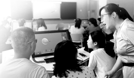 第一環節,打磨課例。圍繞“有效備課、有效上課、有效訓練、有效檢測、有效延展”等研修主題推進學校備教學評研一致性。通過領航示范課教師帶頭,學科團隊參與,集體開展教學設計,在教學實踐中重點提升中小學教師信息技術應用能力提升工程2.0中的30個能力點。