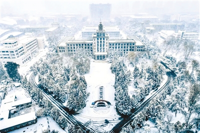 第一場霜雪來臨,如千萬朵白色的茉莉花在空中翩翩起舞,給東北大學的校園帶來了一場純白的夢。披著銀裝的校園映入眼簾,如同一幅水墨畫。詩情畫意中的白山黑水,共同構成了冬日里的校園美景。
