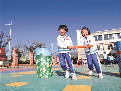 日前,云南省會(huì)澤縣第二幼兒園舉辦了一場熱熱鬧鬧的“體育嘉年華”活動(dòng)。為培養(yǎng)幼兒對運(yùn)動(dòng)的熱情,該園每年都會(huì)舉辦針對不同年齡段幼兒的體育活動(dòng)。對小班幼兒,主要是提升其動(dòng)作的協(xié)調(diào)性與靈活性;對中、大班幼兒,主要是提升其走、跑、跳等八大動(dòng)作的熟練性。圖為大班幼兒在進(jìn)行“旋風(fēng)跑”。張耀月 圖 朱莉 馬金友 文