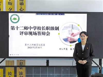“我們深度參與到校長職級制改革過程中。”第十二師黨委組織部常務副部長陳晨說,“對競聘人員的資格、專家評委組成、選聘程序公正性進行全程監(jiān)督,同時,對教育局聘任的校長進行備案。”