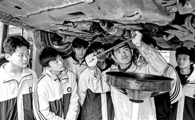 12月14日,在江西省瑞昌中等專業(yè)學(xué)校,學(xué)生在汽車應(yīng)用與維修實(shí)訓(xùn)室實(shí)操。近年來(lái),江西省瑞昌中等專業(yè)學(xué)校強(qiáng)化職業(yè)教育辦學(xué)特色,采取“產(chǎn)教融合、校企合作、工學(xué)結(jié)合、訂單培養(yǎng)”人才培養(yǎng)模式,開設(shè)汽車應(yīng)用與維修、數(shù)控、3D打印、烹飪等專業(yè),有針對(duì)性地培養(yǎng)市場(chǎng)急需職業(yè)人才,保障職校畢業(yè)生就業(yè)。