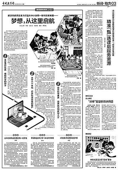 地方新聞版每月一期的“新賽道的教育‘加速’”欄目,呈現(xiàn)各省份重點(diǎn)地區(qū)與駐地高校深度合作、大中小學(xué)聯(lián)合培養(yǎng)拔尖創(chuàng)新人才的典型案例。在同各地記者站充分溝通的基礎(chǔ)上,我們精心選擇深圳市光明區(qū)、武漢市武昌區(qū)、北京市海淀區(qū)、天津市南開區(qū)等重點(diǎn)地區(qū),提煉發(fā)展科學(xué)教育的典型經(jīng)驗(yàn)與特色做法。