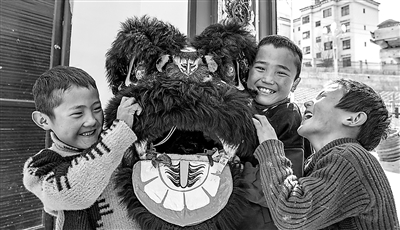 在西藏昌都市洛隆縣碩督鎮碩督村,孩子們手捧獅子舞道具玩耍(1月19日攝)。昌都市非物質文化遺產碩督鎮獅子舞傳承人鄧巴阿尼從2015年開始通過政府“非遺進校園”項目,在碩督鎮小學開設的興趣班里執教,指導學生們學習獅子舞。新華社記者 丁增尼達 攝