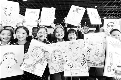 海鹽縣三毛小學的學生正在展示她們創(chuàng)作的漫畫。海鹽縣教育局 供圖