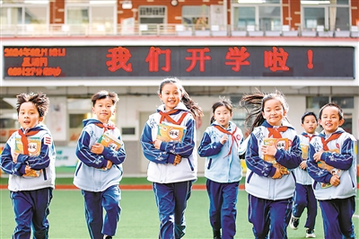 近日,在福建省福州市安泰街道斗南小學,孩子們領取新書。福州市多所小學通過講述龍年傳統文化、制作龍燈、分享新年趣聞等豐富多彩的活動,歡迎學生們返校,喜迎春季新學期到來。謝貴明 攝