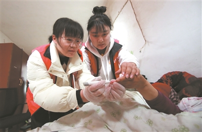 張佳莉是徐州市沛縣好而康養(yǎng)老照護(hù)站的一名主管,也是徐州幼兒師范高等專科學(xué)校健康服務(wù)與管理學(xué)院2022屆畢業(yè)生。她一邊親切地跟韓奶奶打招呼,一邊嫻熟、規(guī)范地為韓奶奶測(cè)量血糖血壓,接著又耐心、細(xì)致地開展頭面部清潔、洗腳、按摩等工作。韓奶奶前些年因腦梗引發(fā)半身不遂,長期臥床。受惠于政府長期照護(hù)保險(xiǎn)政策,韓奶奶不僅有政府補(bǔ)貼,還有專業(yè)的上門護(hù)理,家里的照護(hù)經(jīng)濟(jì)負(fù)擔(dān)和照護(hù)壓力切切實(shí)實(shí)減輕了。