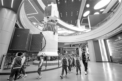 4月24日是中國航天日,不少學生游客來到哈爾濱工業大學航天館參觀,接受科普教育。