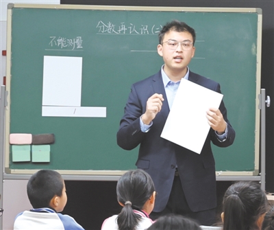 “年輕教師要蹲下身子,沉下去,不僅要研究教材內容,還得琢磨學生的新特點,創新自己的教學方法。”劉亦倫開始主動“游學”。他把年級所有數學老師的課表都抄下來,只要有空,就去聽;不僅課上聽,課下也跟著學,跟著老師們一起制作教具,虛心請教,提出建議。他還主動打開教室,邀請其他老師前來指導。