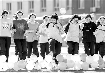 近日,內蒙古自治區呼和浩特市第十二中學組織舉辦“舞動激情 放飛夢想”高三年級趣味運動嘉年華活動,讓高三學生在復習備考之余,強身健體,愉悅身心,輕松迎考。圖為該校高三學生在參加踩氣球趣味游戲。