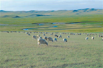 行車駛出呼倫貝爾市海拉爾區(qū),道路兩旁的曠野上,種植最多的是整齊連片的沙地樟子松。比樟子松更高大的是白樺,泛起的新綠在微風(fēng)中搖曳。僅僅50分鐘車程,記者一行就得見陳巴爾虎旗草原。這里有堿草、針茅、苜蓿、冰草等120多種營養(yǎng)豐富的牧草,“牧草王國”之名由此而來。“天下第一曲水”莫爾格勒河流過草原,迂回如帶,澄明如鏡。