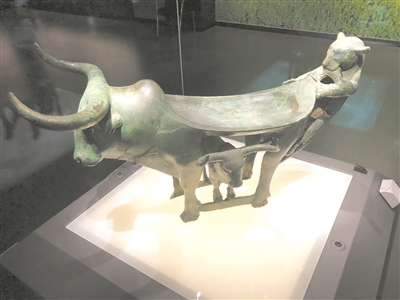 仔細觀察,原來牛虎銅案下面還有一只小牛。大牛的沉默隱忍,只是為了保護幼崽。一瞬間,我心底某個柔軟的角落被擊中,就在博物館的展柜前,淚水呼嘯而出。我快步走開,在無人的角落,慢慢平復內心的波瀾。