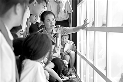 6月21日,在廣西禁毒教育示范基地,公安民警通過模型教學生們分辨毒品。